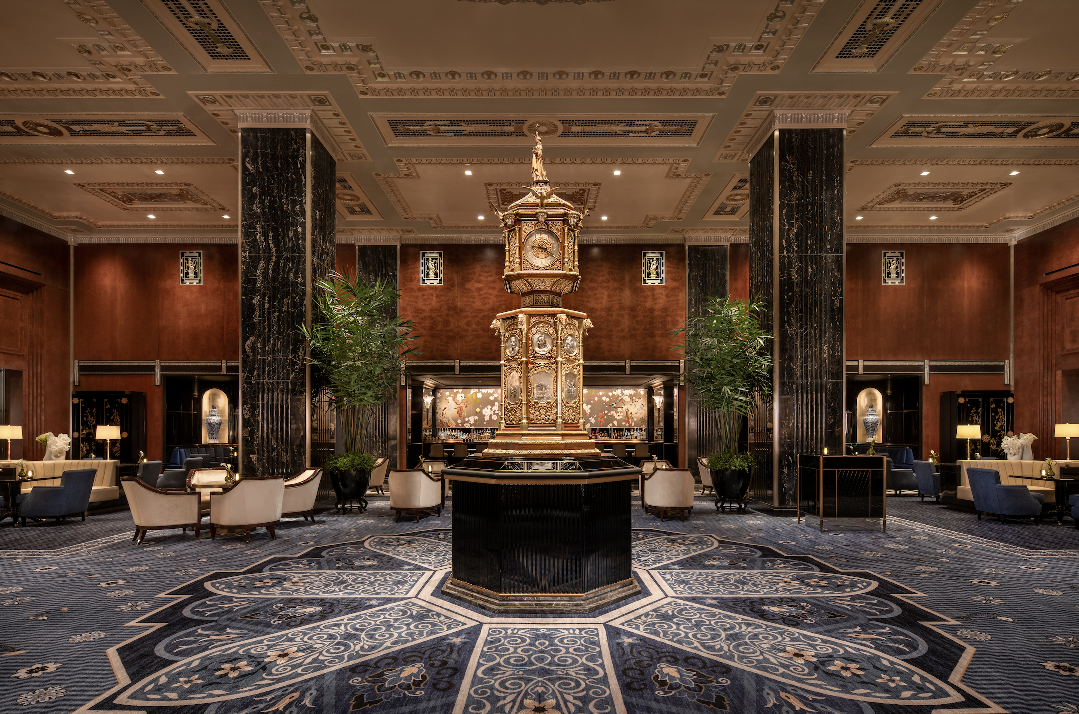 The legendary lobby is reimagined for a new era, with its centerpiece—the 1893 World’s Fair clock—returning in full splendor.